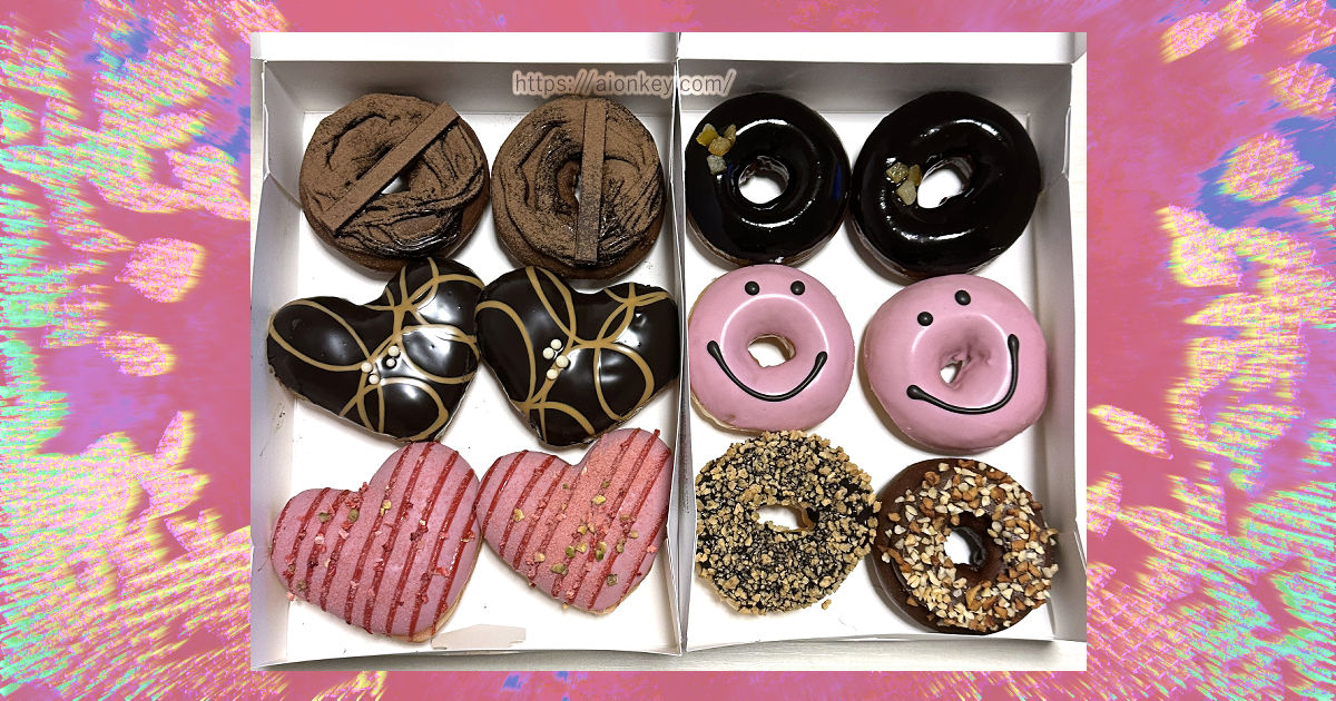バレンタインシーズンでチョコチョコしいラインナップのバレンタインドーナツをBOXで買いました。