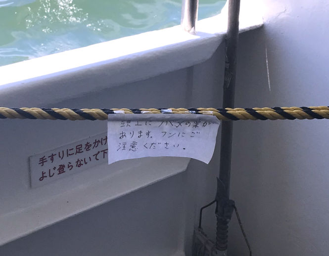 デッキの一部に立ち入り禁止区域が出来ていたので、よく見ると張り紙が……